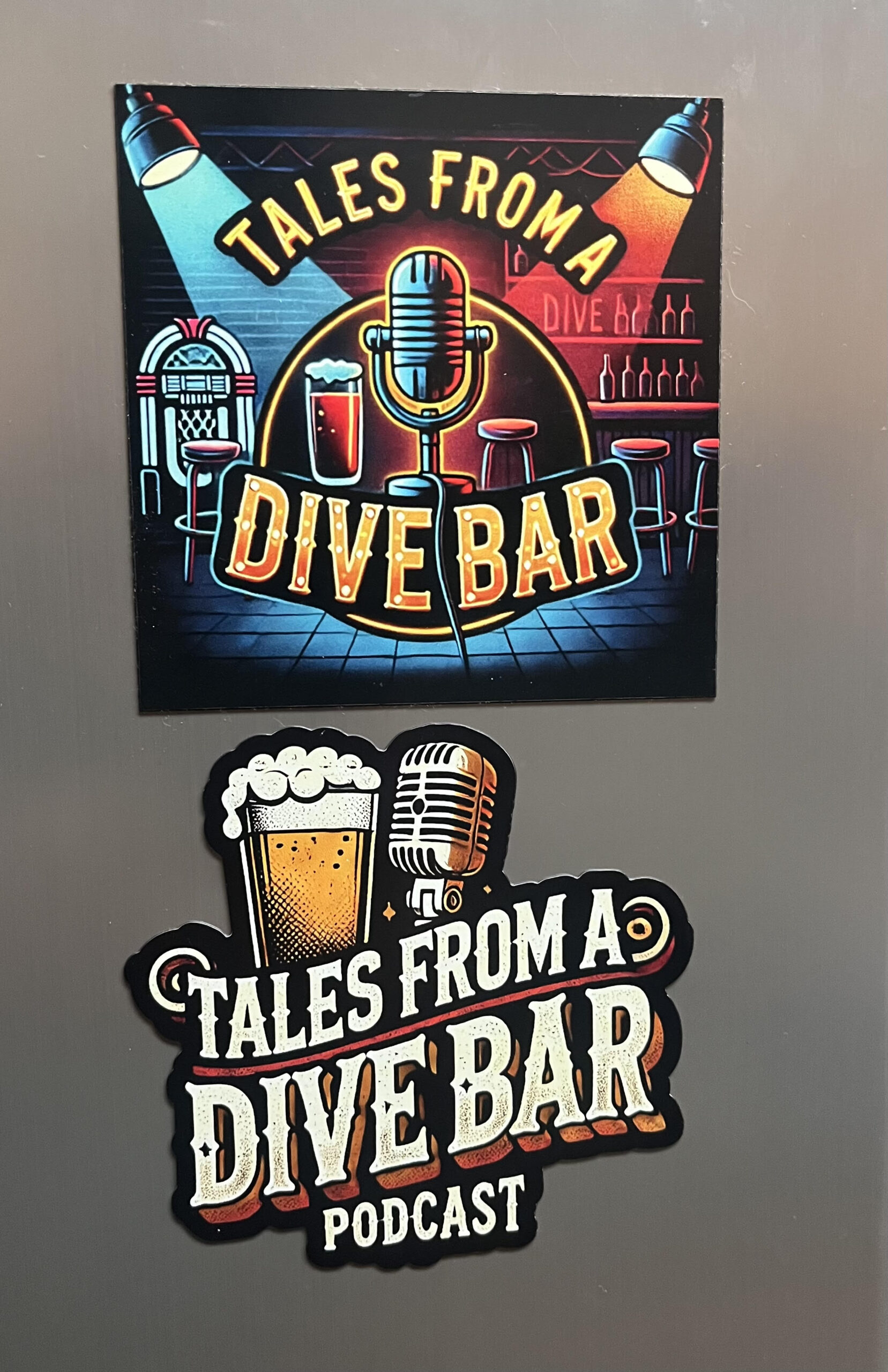 We had to make things more complicated for our alcohol fueled e-commerce intern. What better way to show off listening to our trashy podcast than to sport a 4″x4″ (that’s inches for you folks lacking any math savy) graphic magnet as well as a logo magnet that you can put on your fringe, toolbox, car, or the random dumpster outside of your favorite dive bar. Cheers from TFADB!
